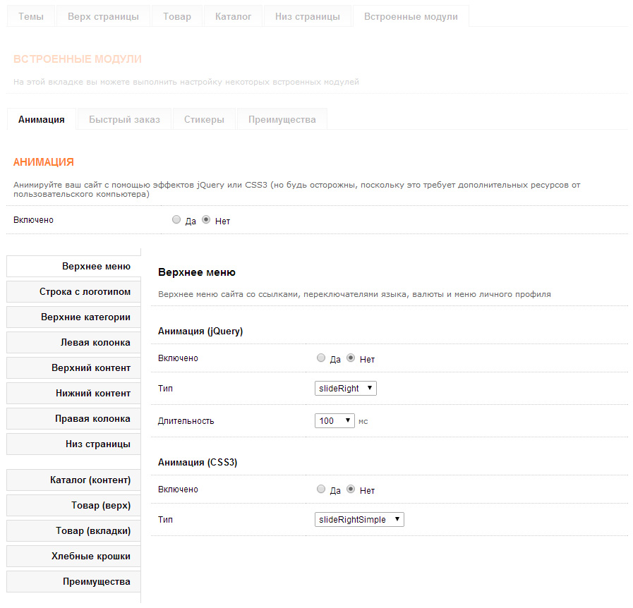 - Слегка изменен интерфейс модуля управления шаблоном, встроенные модули вынесены в отдельную вкладку