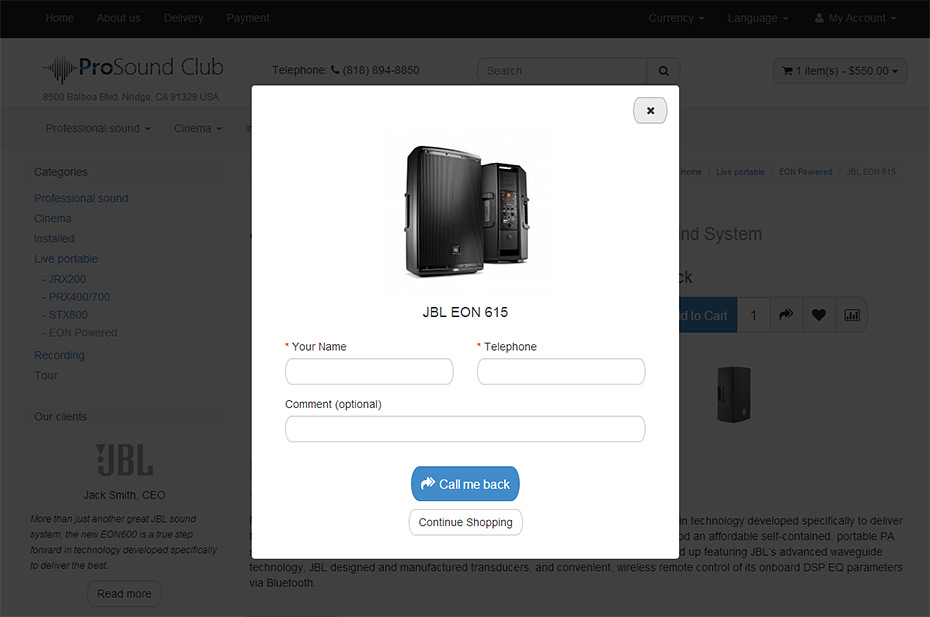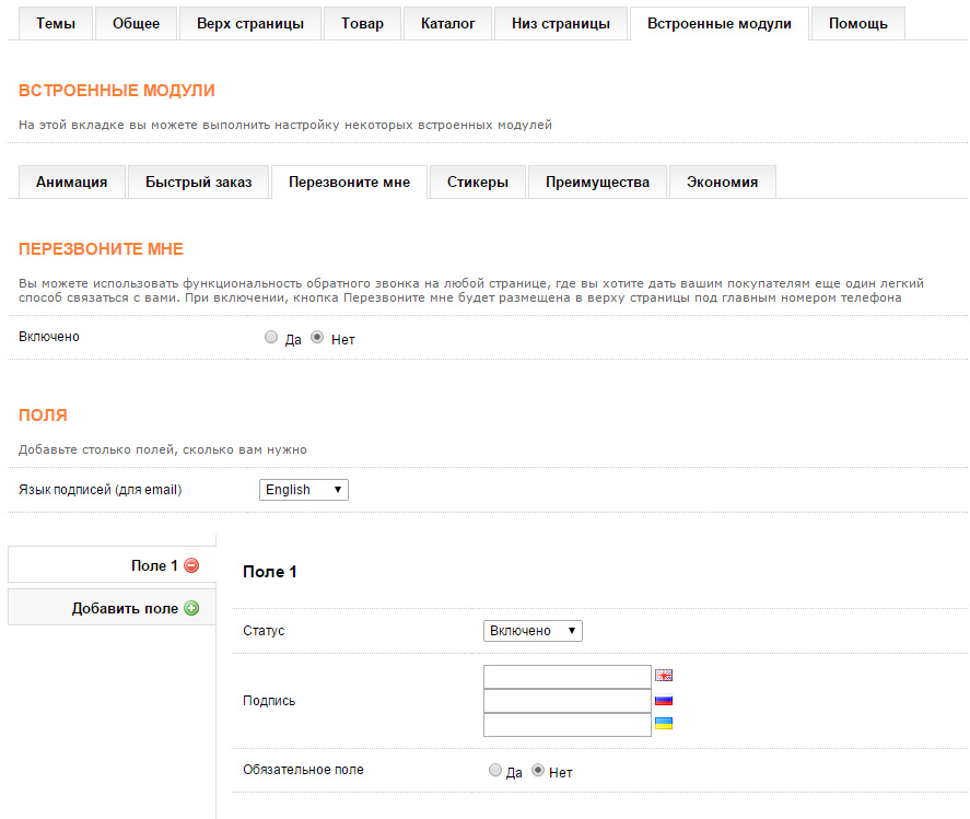 - Модуль Перезвоните мне, позволяющий реализовать функцию обратного звонка