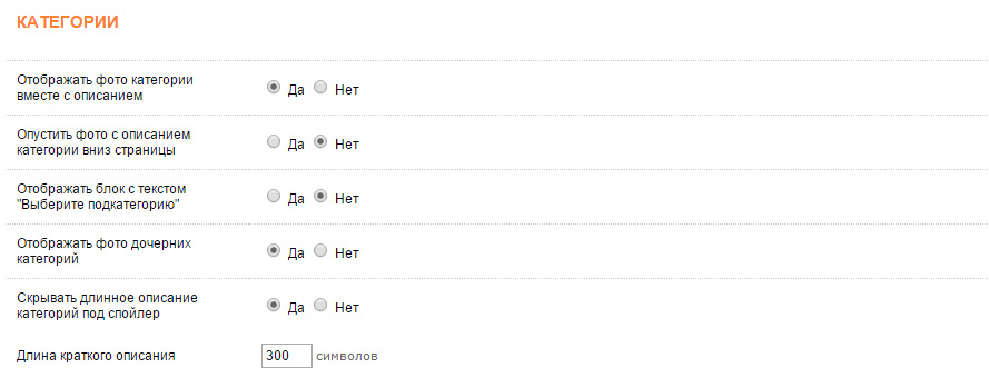 В этой секции также можно выбрать максимальное количество отображаемых категорий, чтобы избежать усложнения интерфейса, при этом часть категорий будет скрыта до нажатия соответствующей ссылки показа всего списка категорий.
