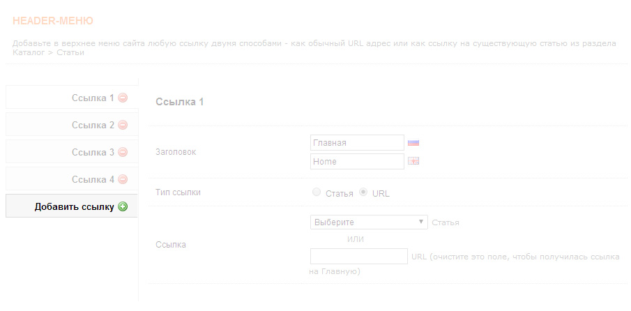 Здесь вы найдете все настройки, связанные с верхней секцией (т.н. header) шаблона - включая улучшенное меню категорий (также называемое Mega-меню) и встроенный модуль header-меню.