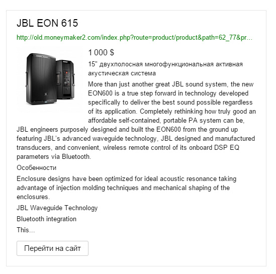 Начиная с версии 1.1.6, здесь же можно вывести содержимое товарного мета-тега description, что позволит, например, контролировать краткое описание товара, полностью заменив его на свой текст, указываемый на странице редактирования товара в поле meta-description соответственно: